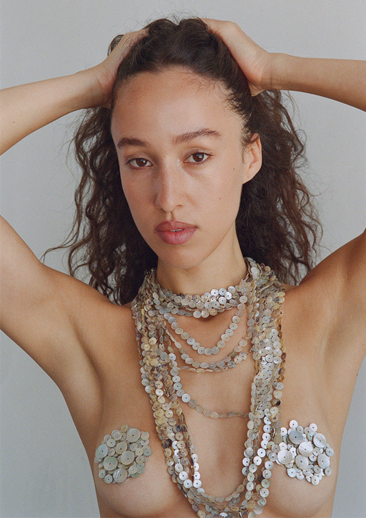 Vintage shell button necklaces. This comes with 4 pieces per order. you can order multiple & stack them to achieve the look captured in our images. Limited quantities on these!