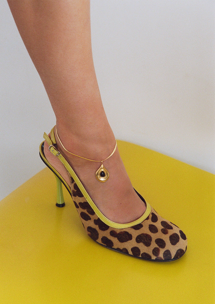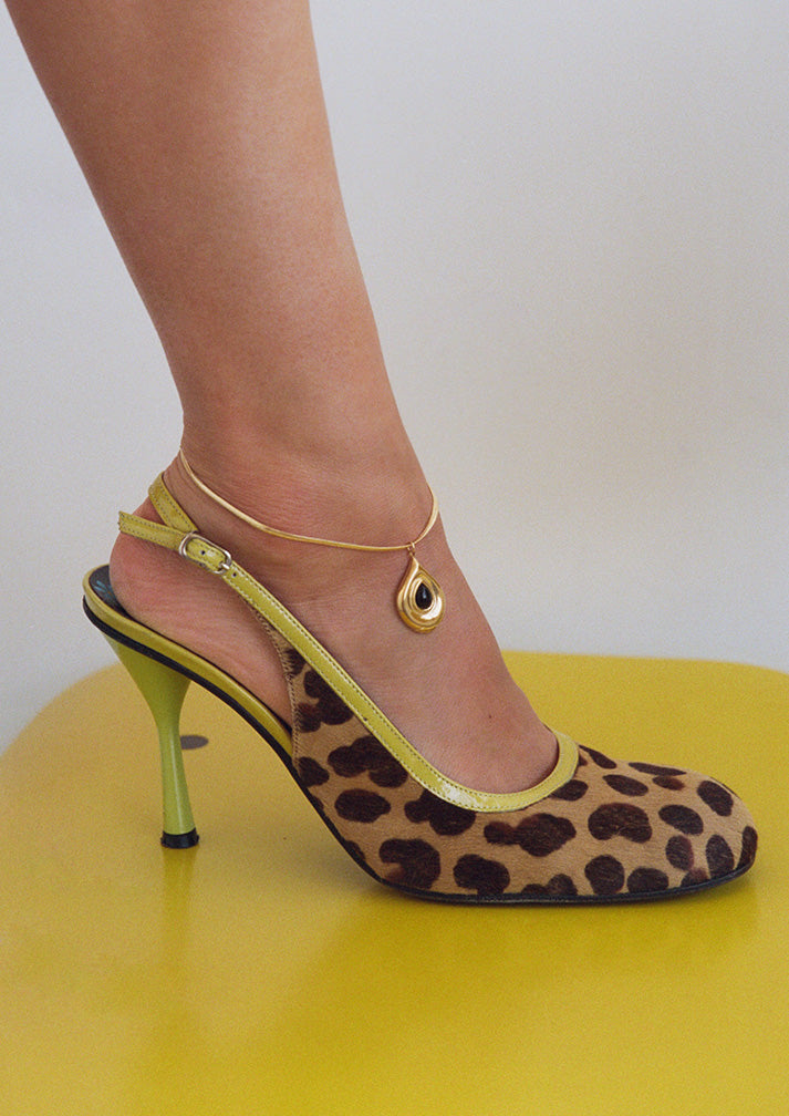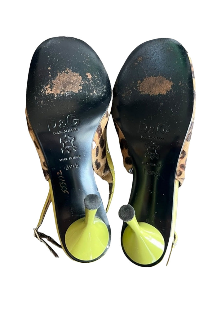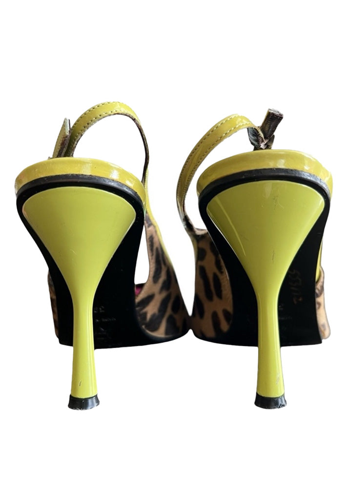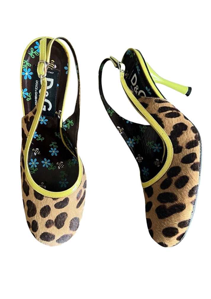 DOLCE & GABABANA VINTAGE LEOPARD PRINT PONYHAIR LIME GREEN ROUND TOE HEELS.