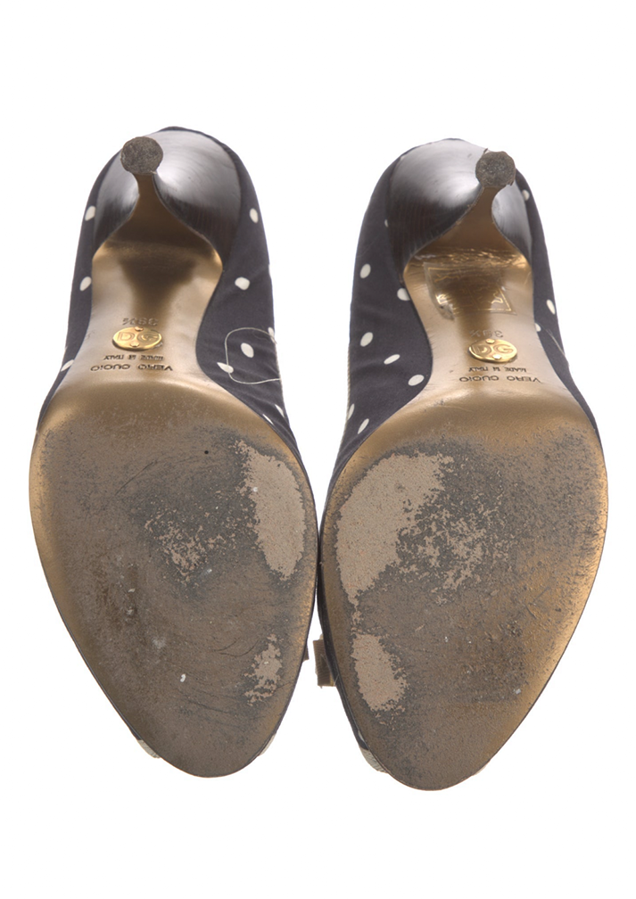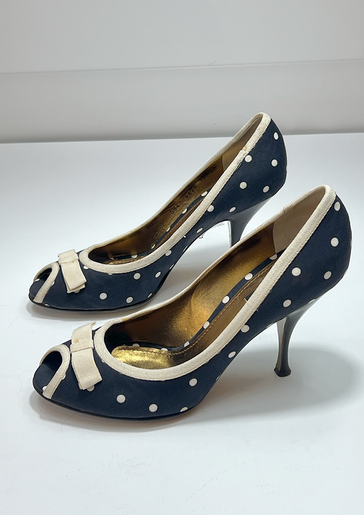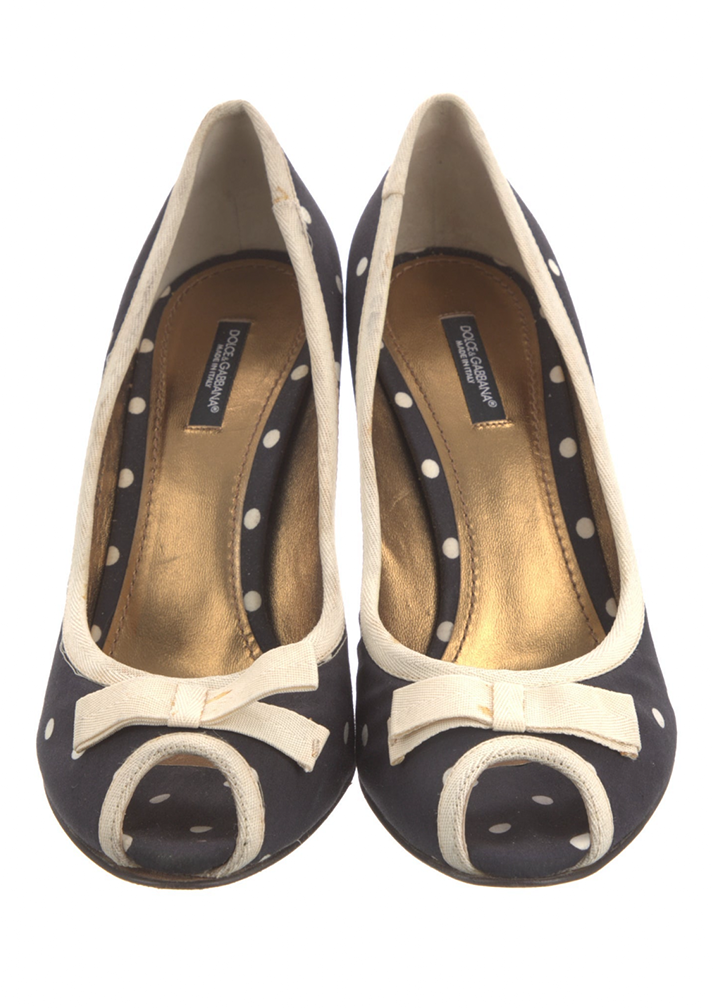 VINTAGE DOLCE & GABBANA SATIN POLKA DOT PUMPS.